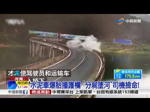 在浙江麗水有一台水泥車,爆胎失控撞擊大橋護欄,整個車體破碎後墜入湖中。還有在河南濮陽有一名女老師,放學準備開車回家時,一個不注意車子暴衝 ,直接撞上前方的小朋友,當場輾壓過多名學生。 全新單元【 與民同行 政治測謊機】► http://bit.ly/2Id5TnU ⊕新 聞 焦 點⊕ 政治最前線►http://bit.ly/2gn6x8f 今日十大發燒新聞► http://bit.ly/1WHwRHn ⊕熱 門 節 目⊕ 了解與互信 兩岸一定旺►http://bit.ly/2nZbisF 改變的起點►http://bit.ly/28SQfO7 60分鐘►http://bit.ly/28O1r34 郝廣才在中視►http://bit.ly/28MTDMe ⊕中視全球資訊網 ⊕ 中視新聞台HD直播頻道►http://bit.ly/28Or4iO 中視新聞YouTube頻道►http://bit.ly/27riGeN 中視新聞FB社群►http://bit.ly/28Ovhnh 中視全球資訊網 ► http://new.ctv.com.tw/