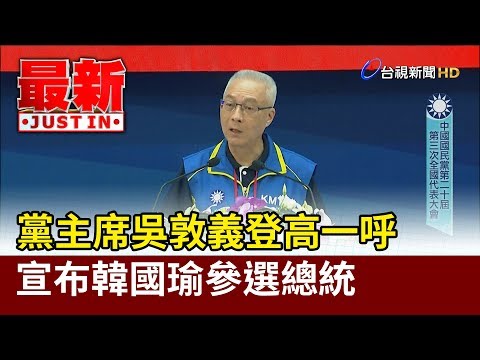 黨主席吳敦義登高一呼 宣布韓國瑜參選總統【最新快訊】